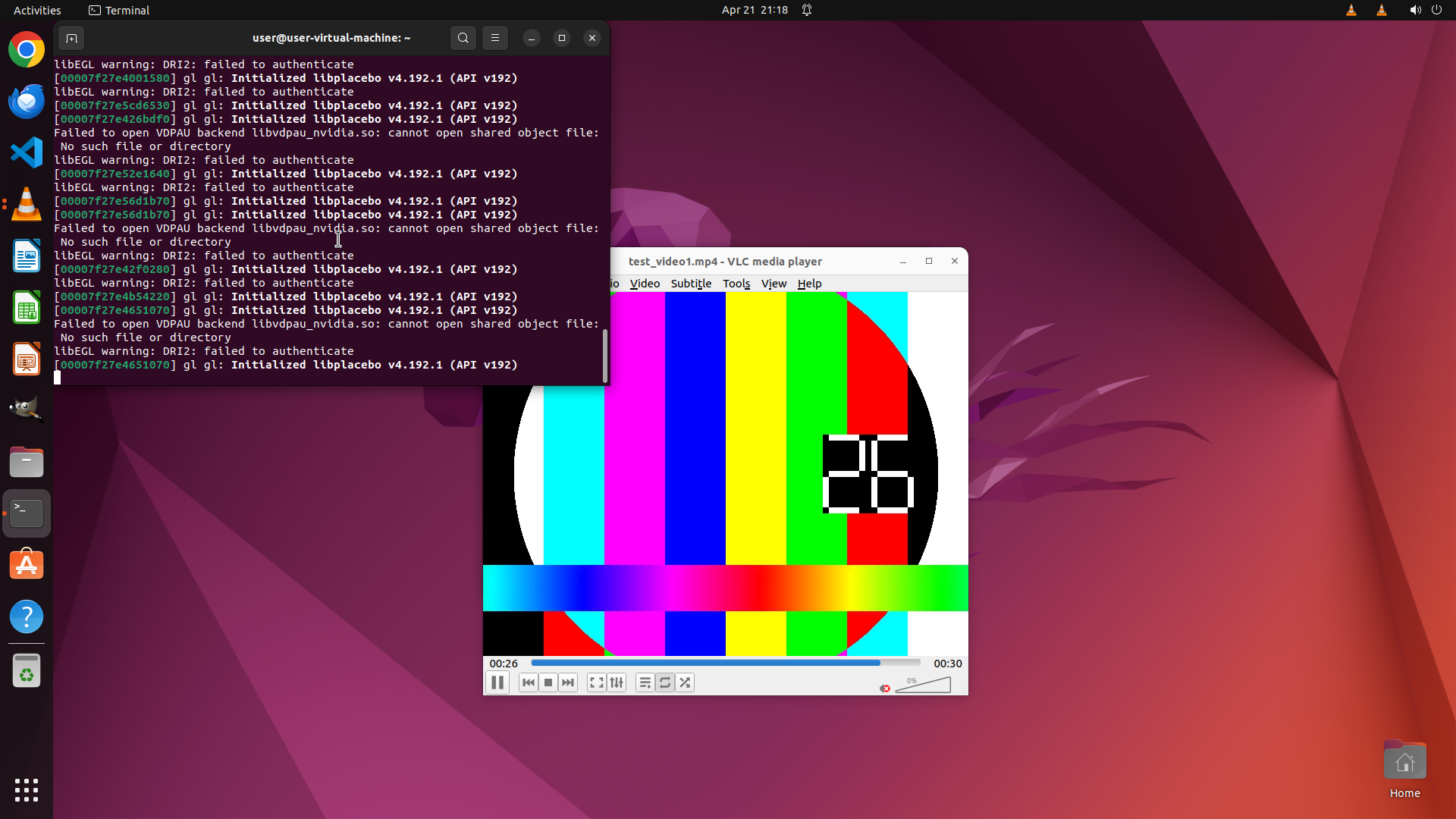 - Multiple "Initialized libplacebo" messages are visible in the terminal