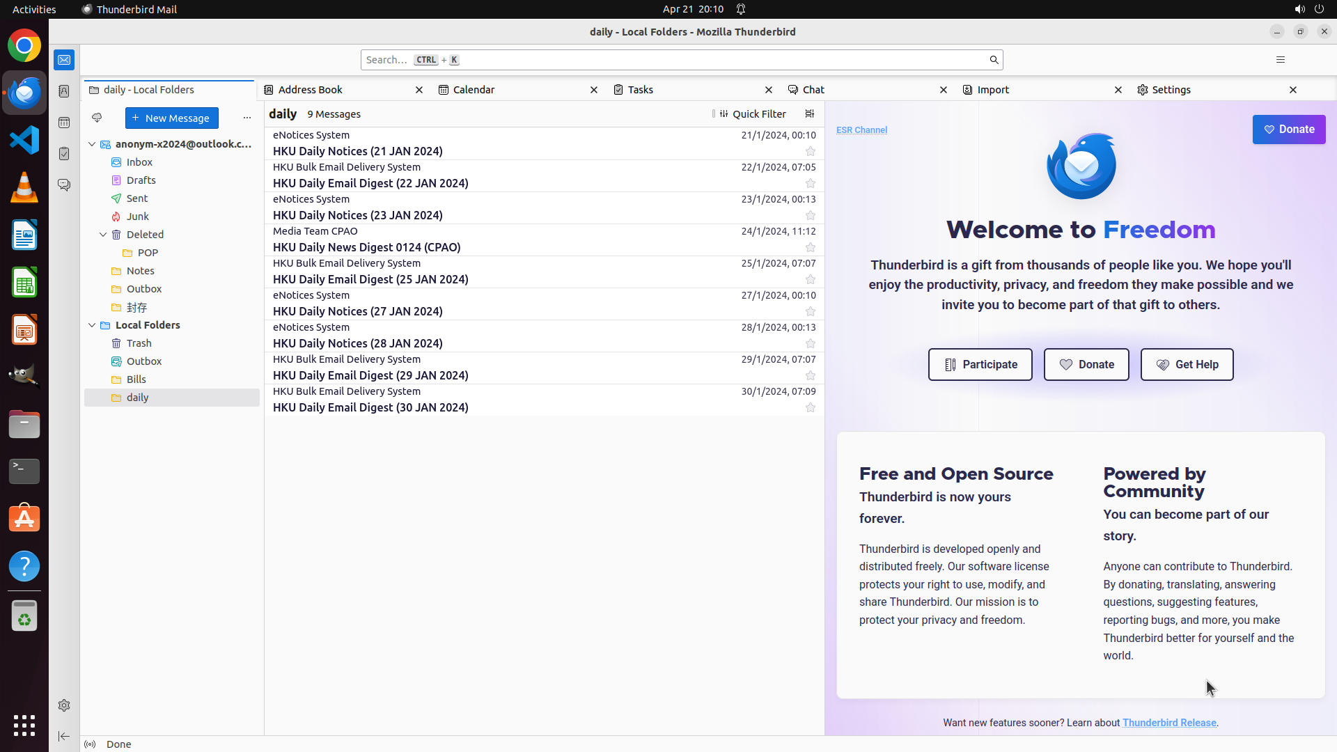 1.1: Confirm Thunderbird is open and daily folder under Local Folders is accessible