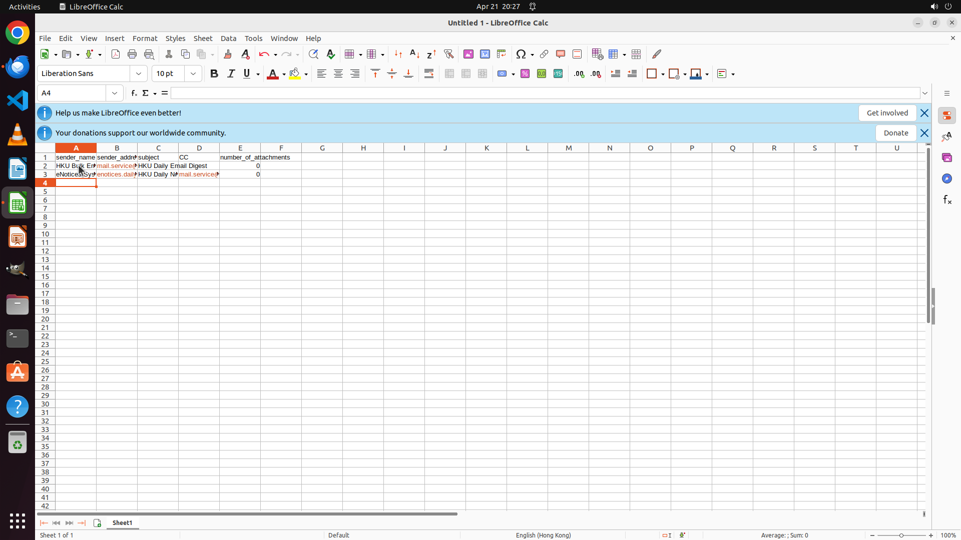 我将按顺序打开这 5 封邮件并记录信息,然后创建 Calc 表格。