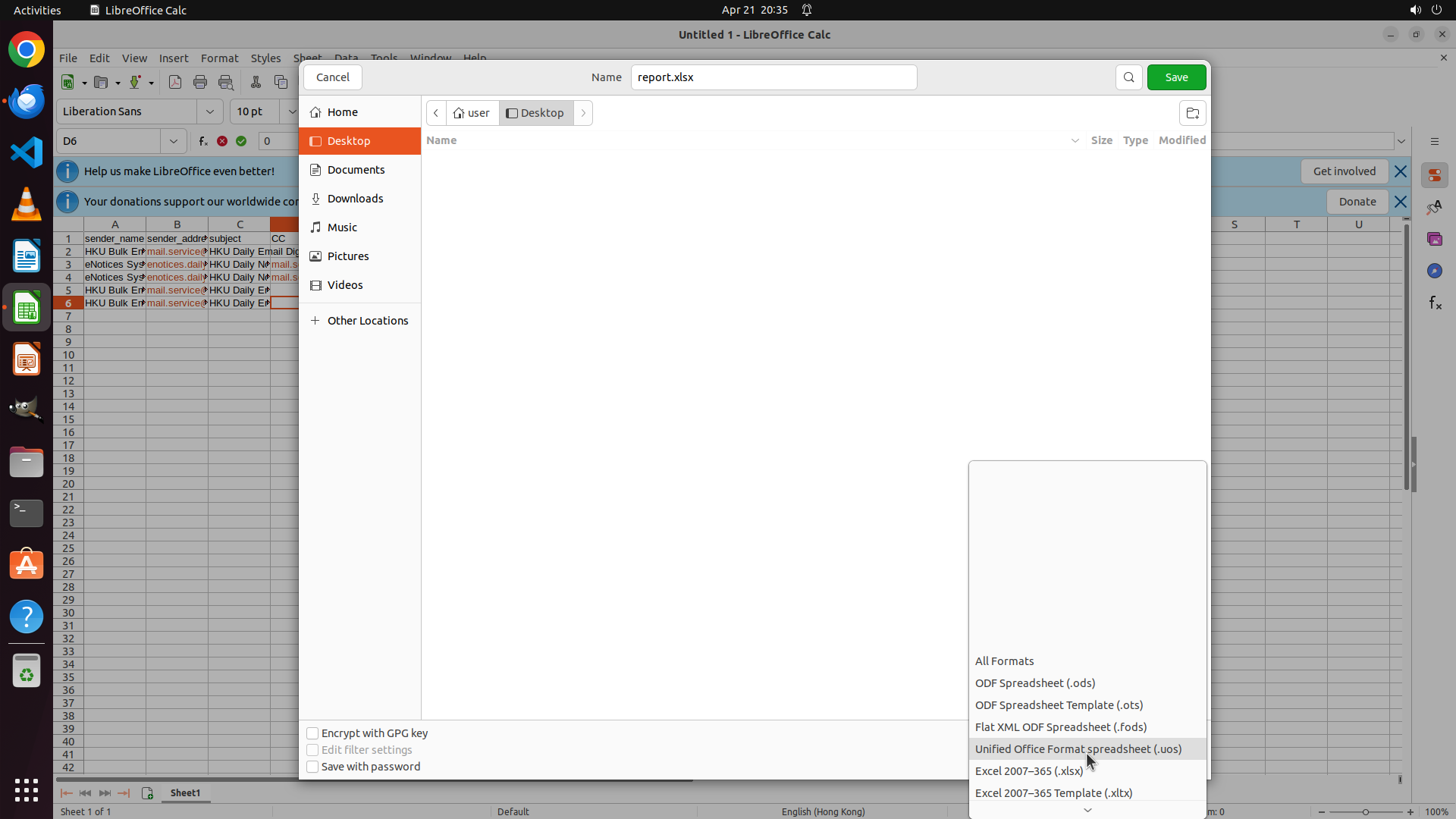- 文件格式显示为 "ODF Spreadsheet (.ods)"