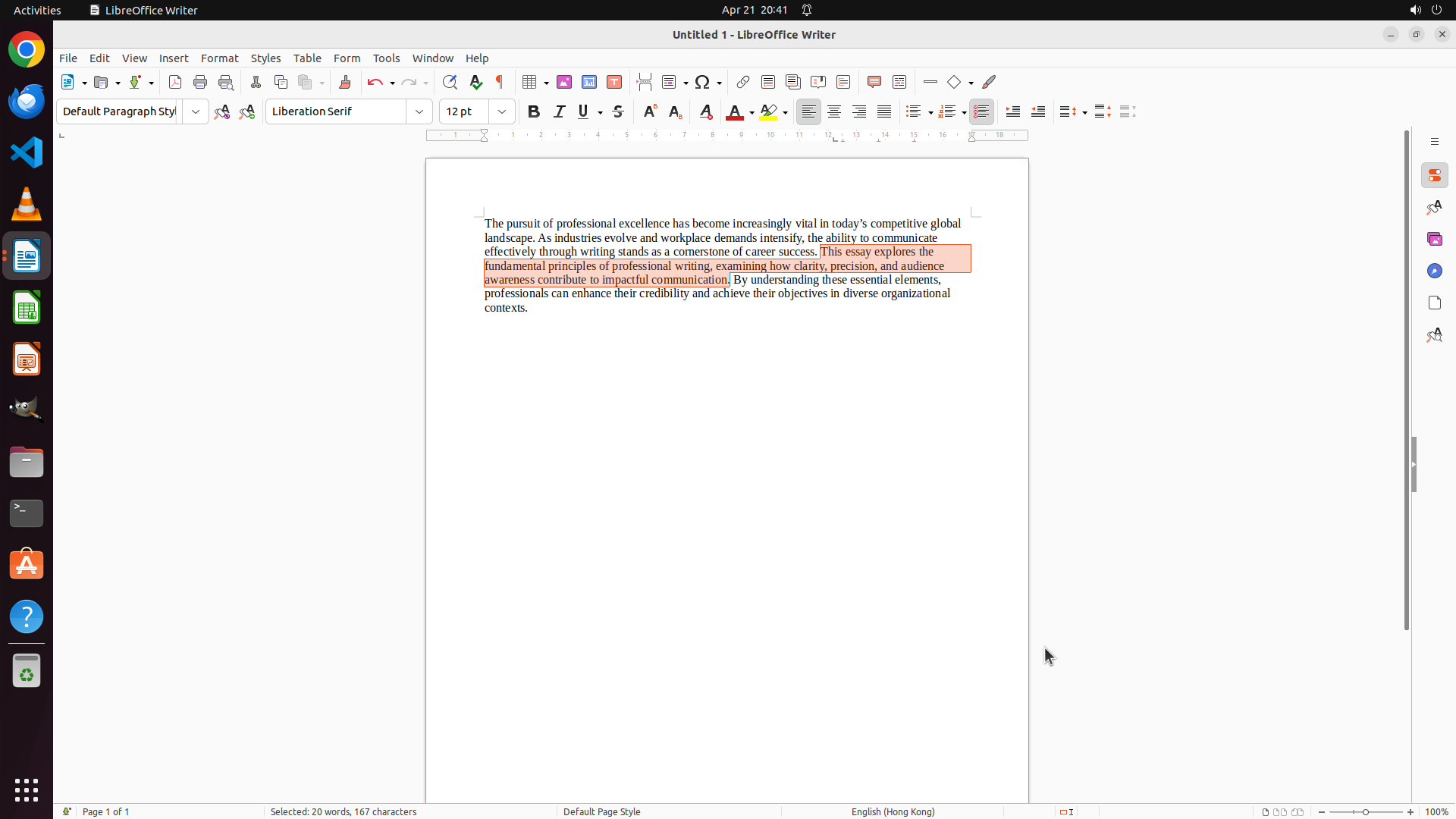 1. 输入文本: The pursuit of professional excellence has become increasingly vital in today's competitive global landscape. As industries evolve and workplace demands intensify, the ability to communicate effectively through writing stands as a cornerstone of career success. This essay explores the fundamental principles of professional writing, examining how clarity, precision, and audience awareness contribute to impactful communication. By understanding these essential elements, professionals can enhance their credibility and achieve their objectives in diverse organizational contexts.