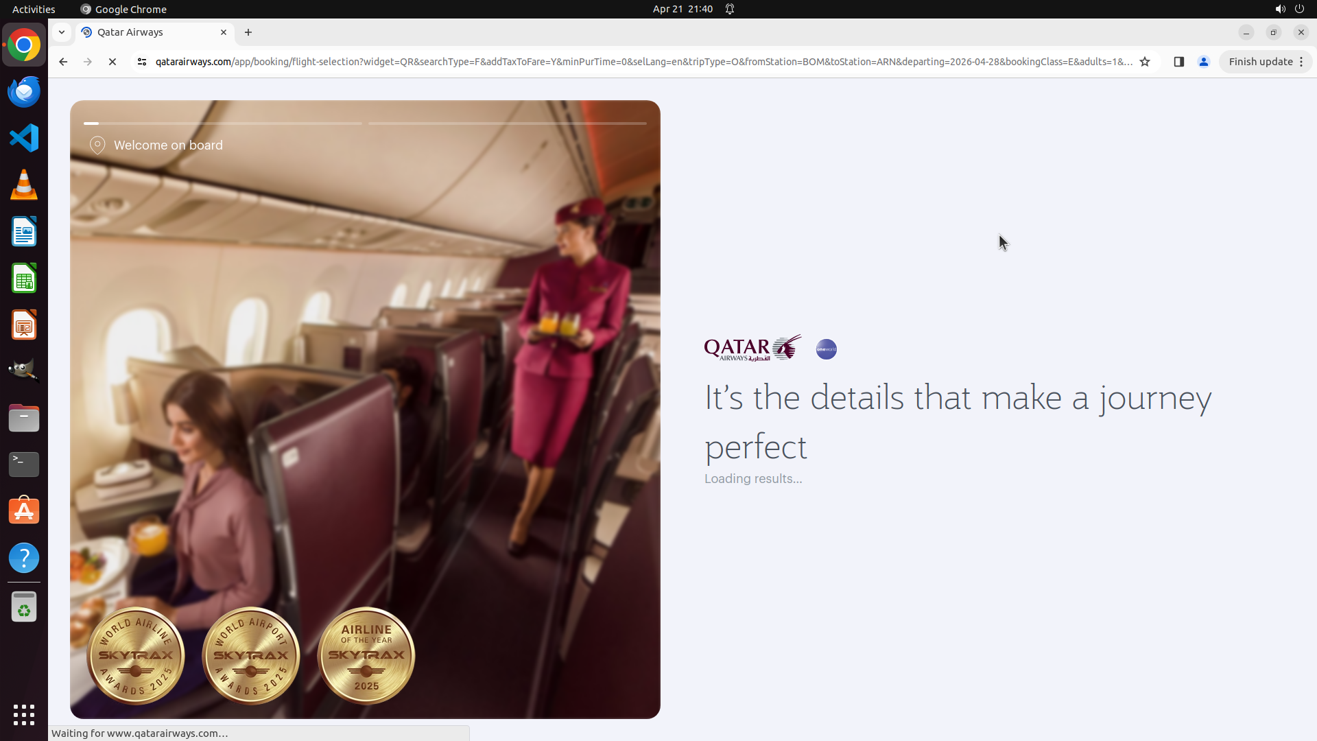 - 出发日期显示"21 Apr 2026",返回日期显示"28 Apr 2026"