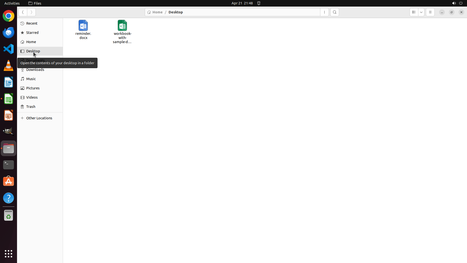 2. 打开文件管理器(点击左侧的 Files 图标)来查看 Desktop 上的文件