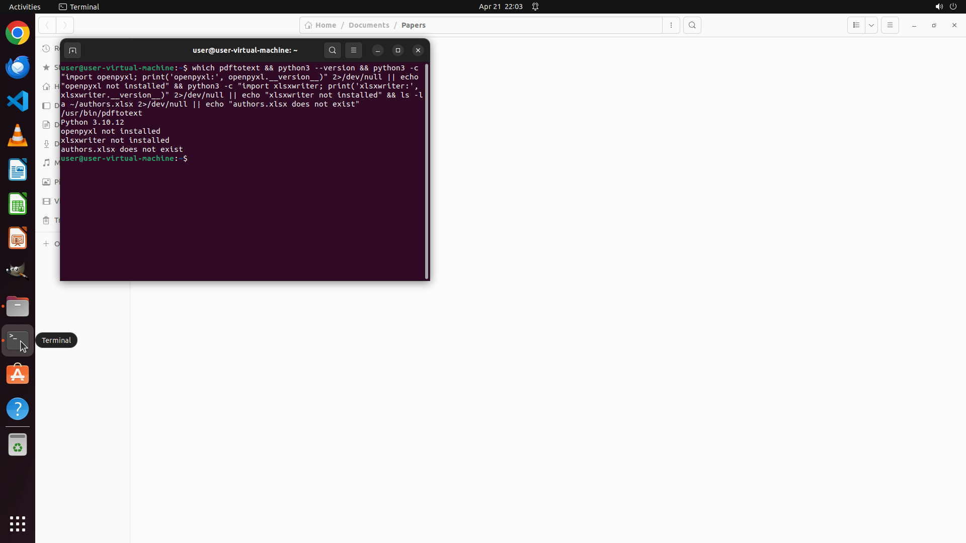2. 然后打开终端检查 pdftotext、Python 相关包以及 authors.xlsx 文件是否存在