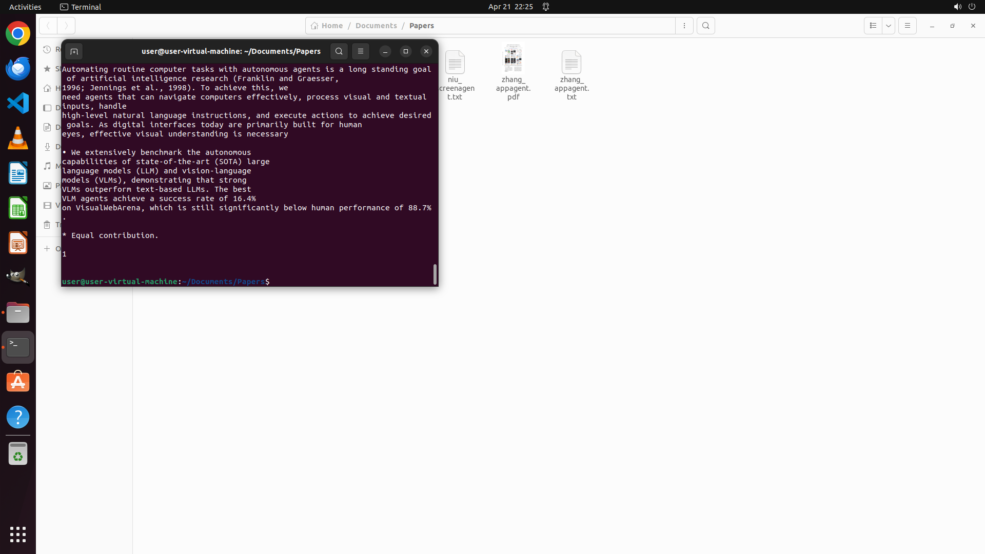 - 文件管理器中显示 Papers 文件夹中已创建了文本文件(可以看到 niu_screenagent.txt 和 zhang_appagent.txt)