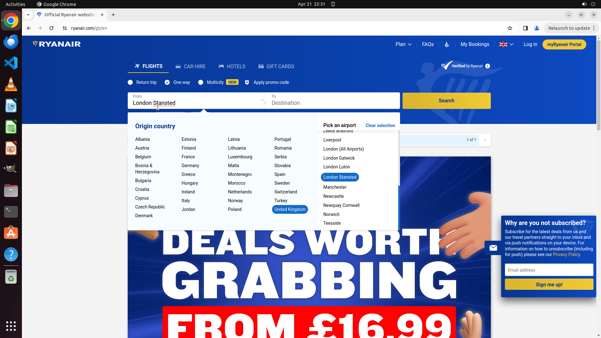 - Chrome浏览器中Ryanair网站已打开(ryanair.com/gb/en)