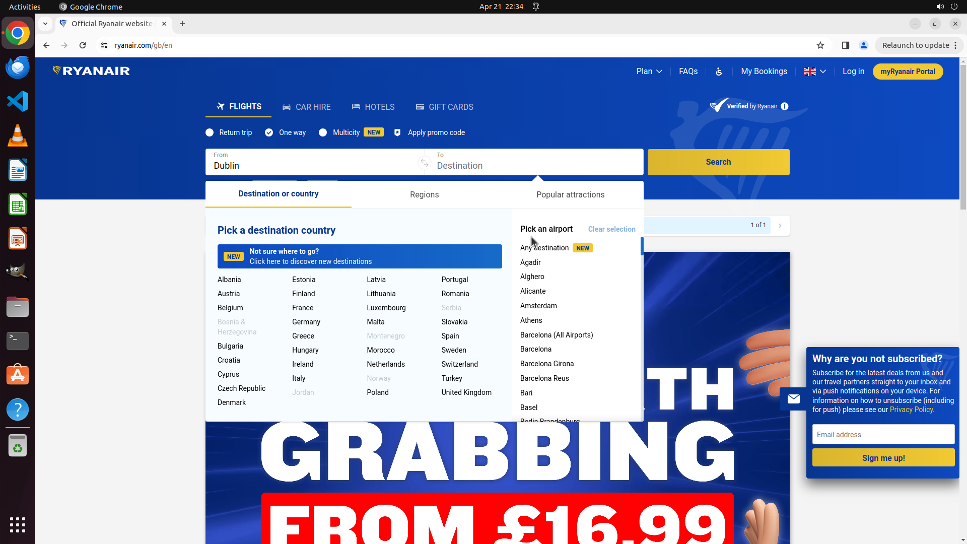 - Chrome浏览器中Ryanair网站已打开(ryanair.com/gb/en)