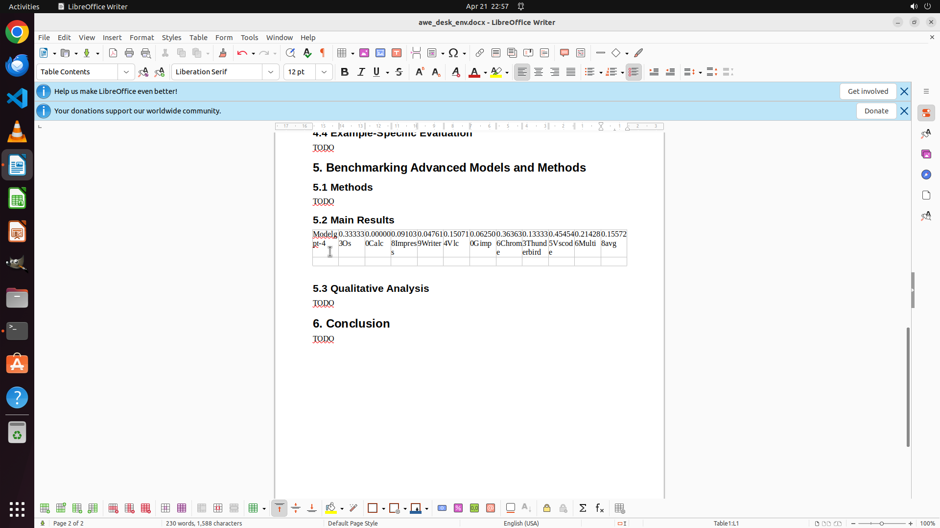 2: [success] Insert extracted table into LibreOffice Writer 'Main Results' section
