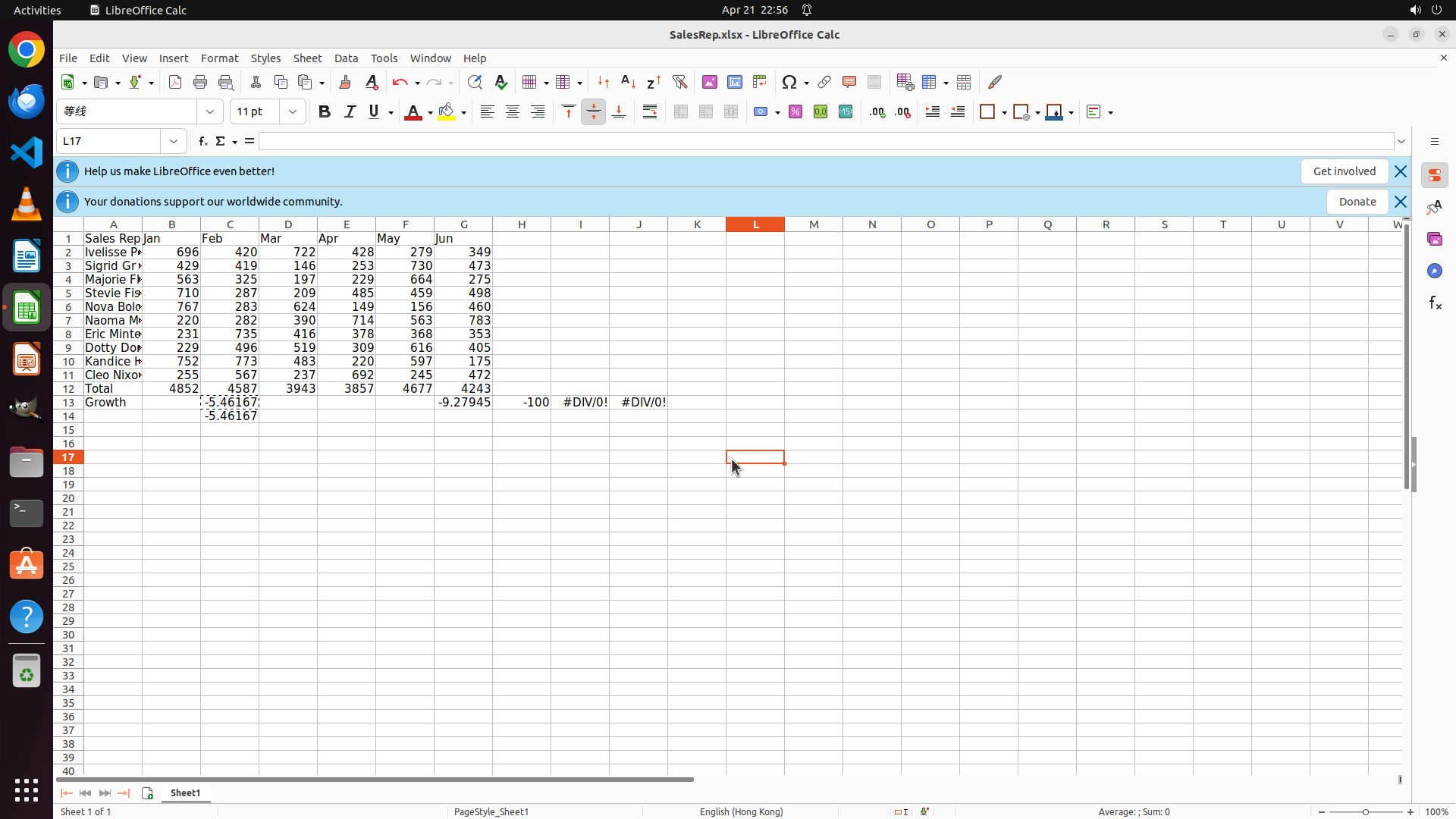 - Row 13 now has "Growth" in A13 and the first growth percentage in C13
