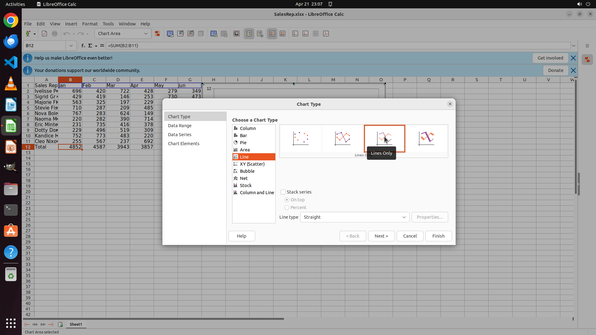当前屏幕显示 LibreOffice Calc 的 Chart Type 对话框已打开: