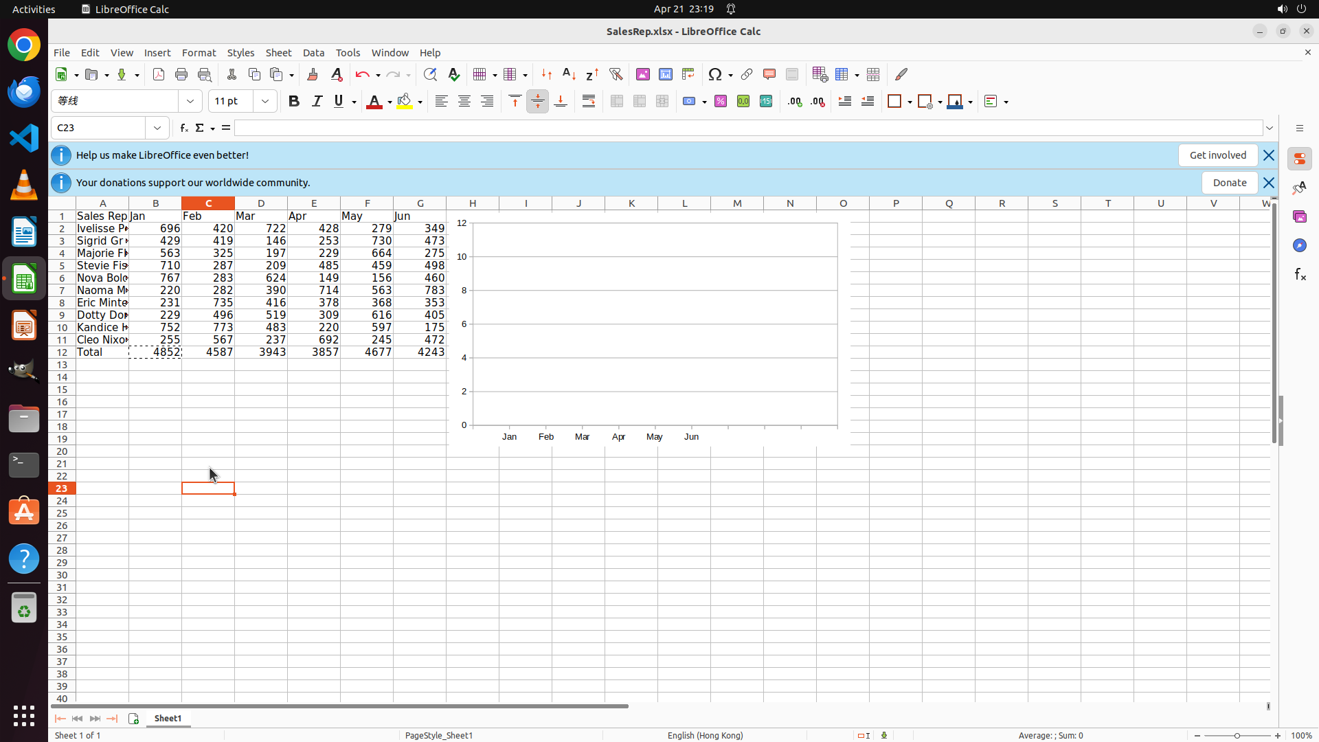 当前屏幕显示 LibreOffice Calc 已打开 SalesRep.xlsx 文件: