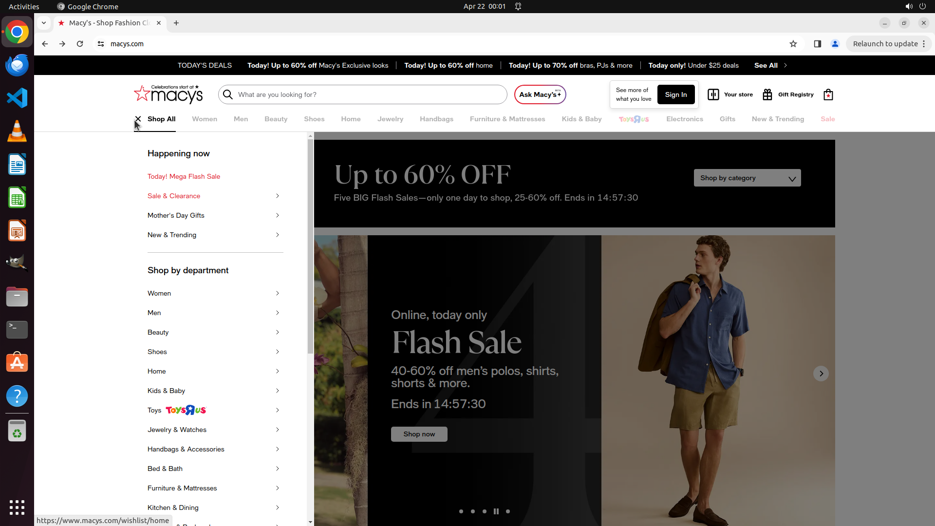 当前屏幕显示Macy's网站,Shop All菜单已打开,Men分类已展开。左侧菜单显示: