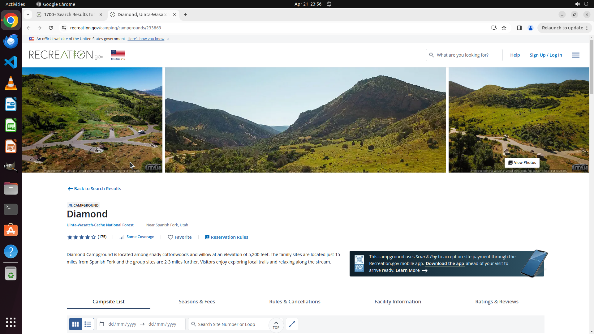 - 页面显示 Diamond 露营地的详情或可用性查询界面(包含营地名称 'Diamond' 和 'Uinta-Wasatch-Cache National Forest' 位置信息)