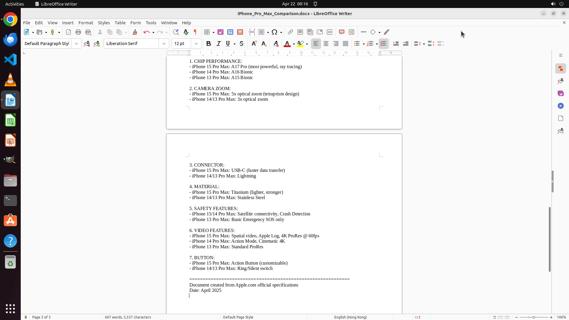 太好了!文档内容已经成功创建并显示在 LibreOffice Writer 中。我可以看到完整的对比文档,包括: