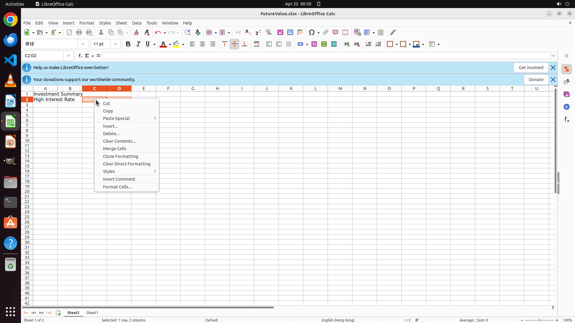 - LibreOffice Calc is open with Sheet2 active