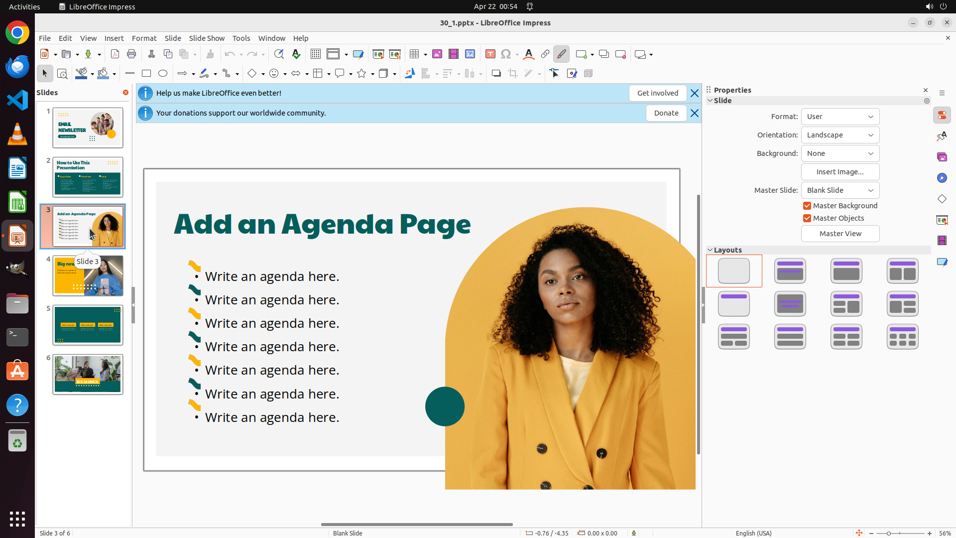 - LibreOffice Impress is open with file "30_1.pptx"