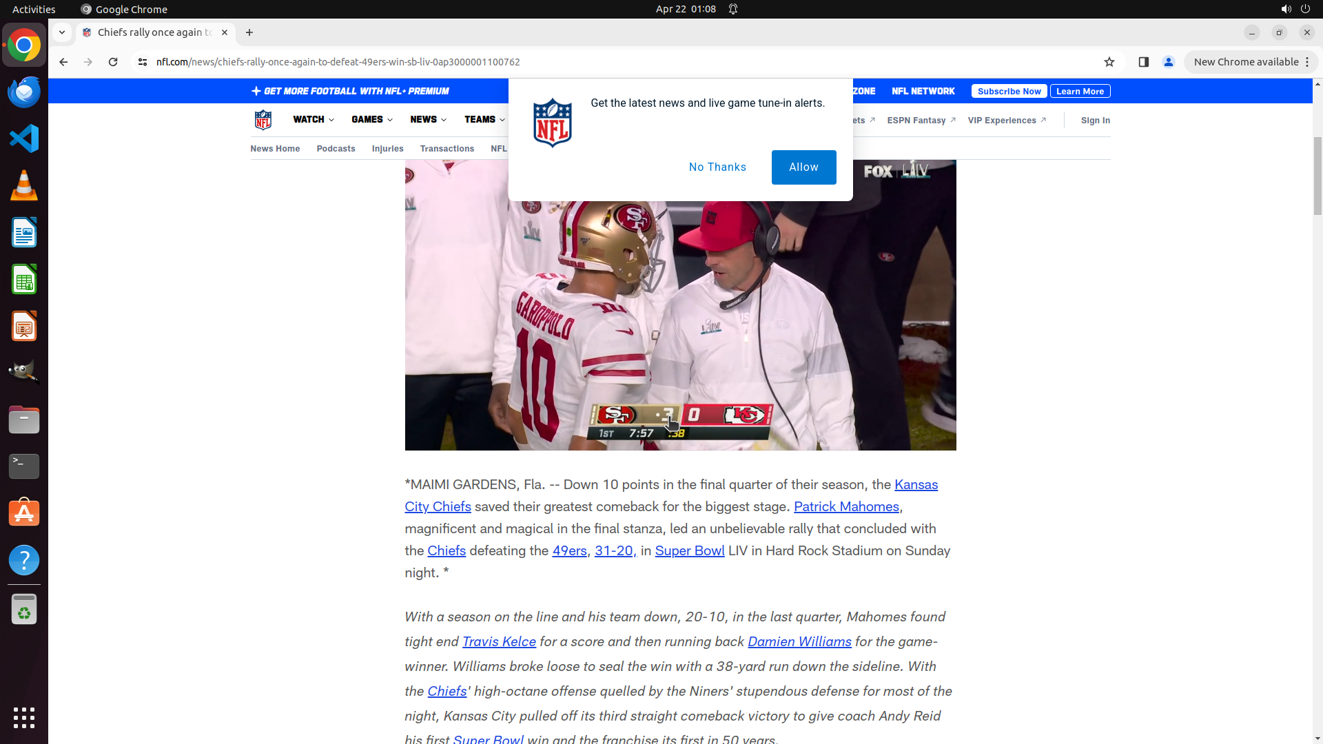 很好!我已经成功访问了 NFL.com 上关于 Super Bowl LIV 的官方文章。现在需要: