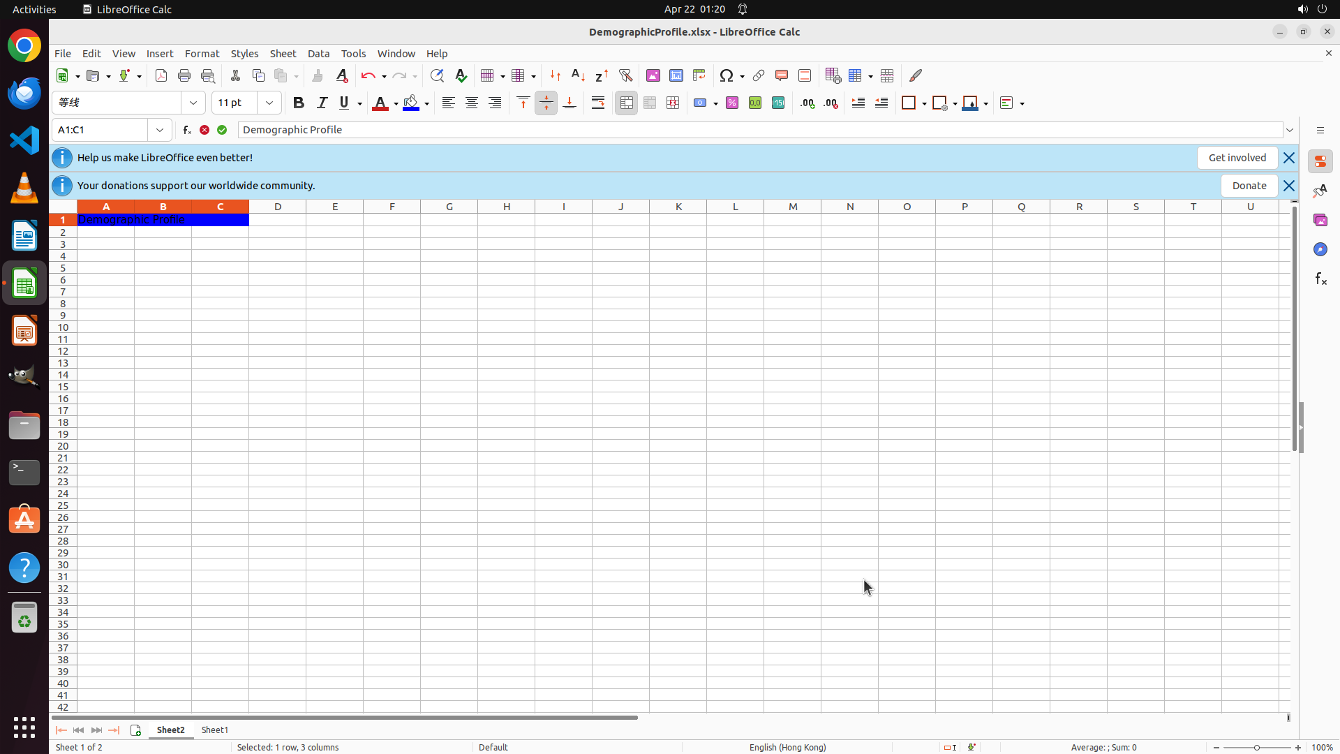 - LibreOffice Calc 已打开,文件名为 "DemographicProfile.xlsx"