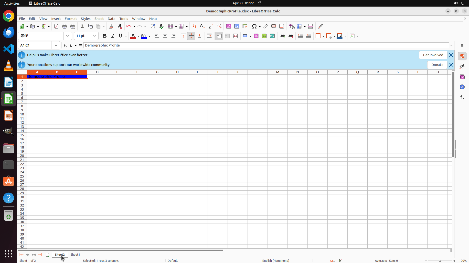 1.8: [pending] Type 'Demographic Profile' in merged cell A1:C1