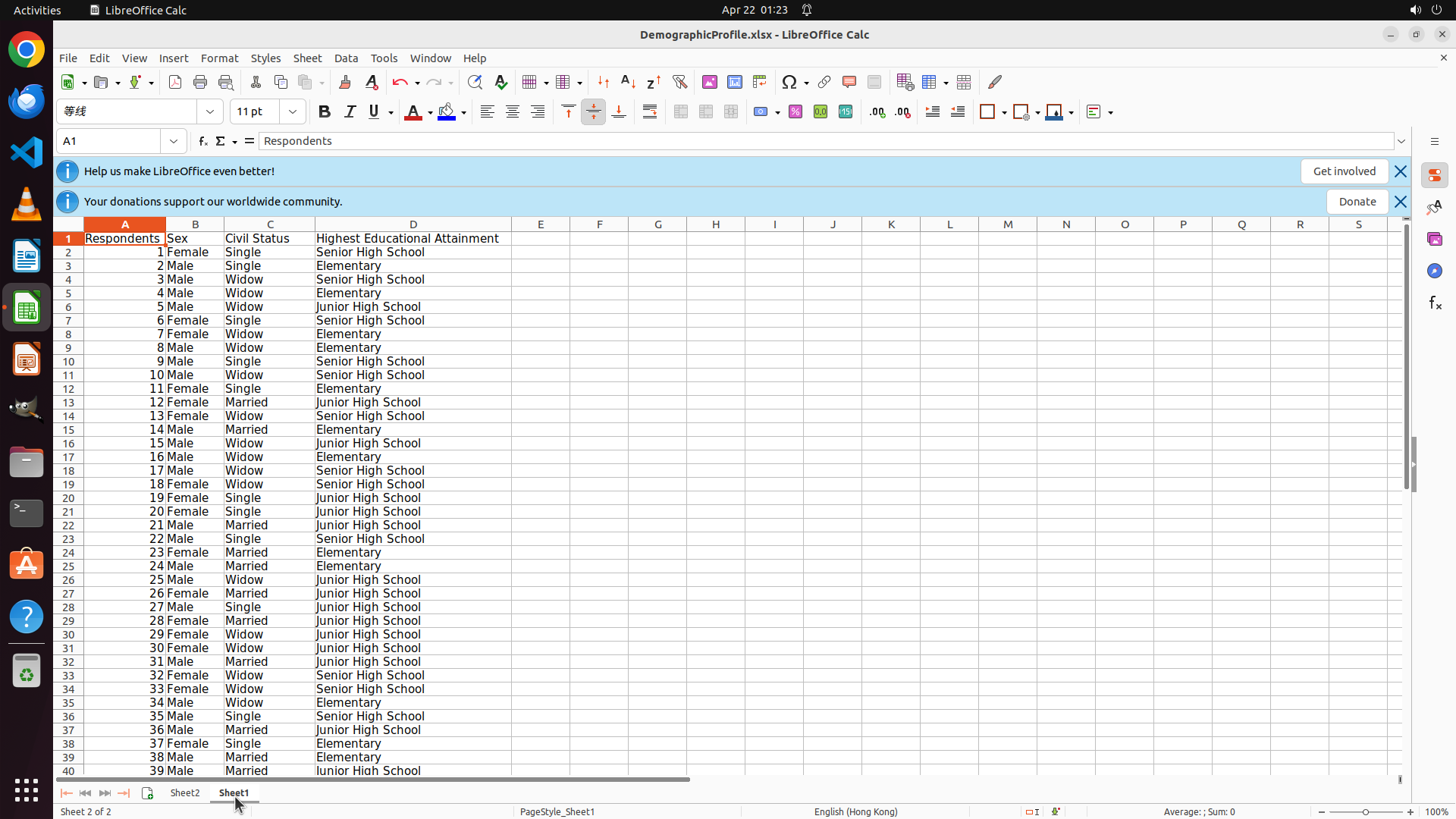 - 需要创建三个数据透视表(Sex、Civil Status、Highest Educational Attainment)