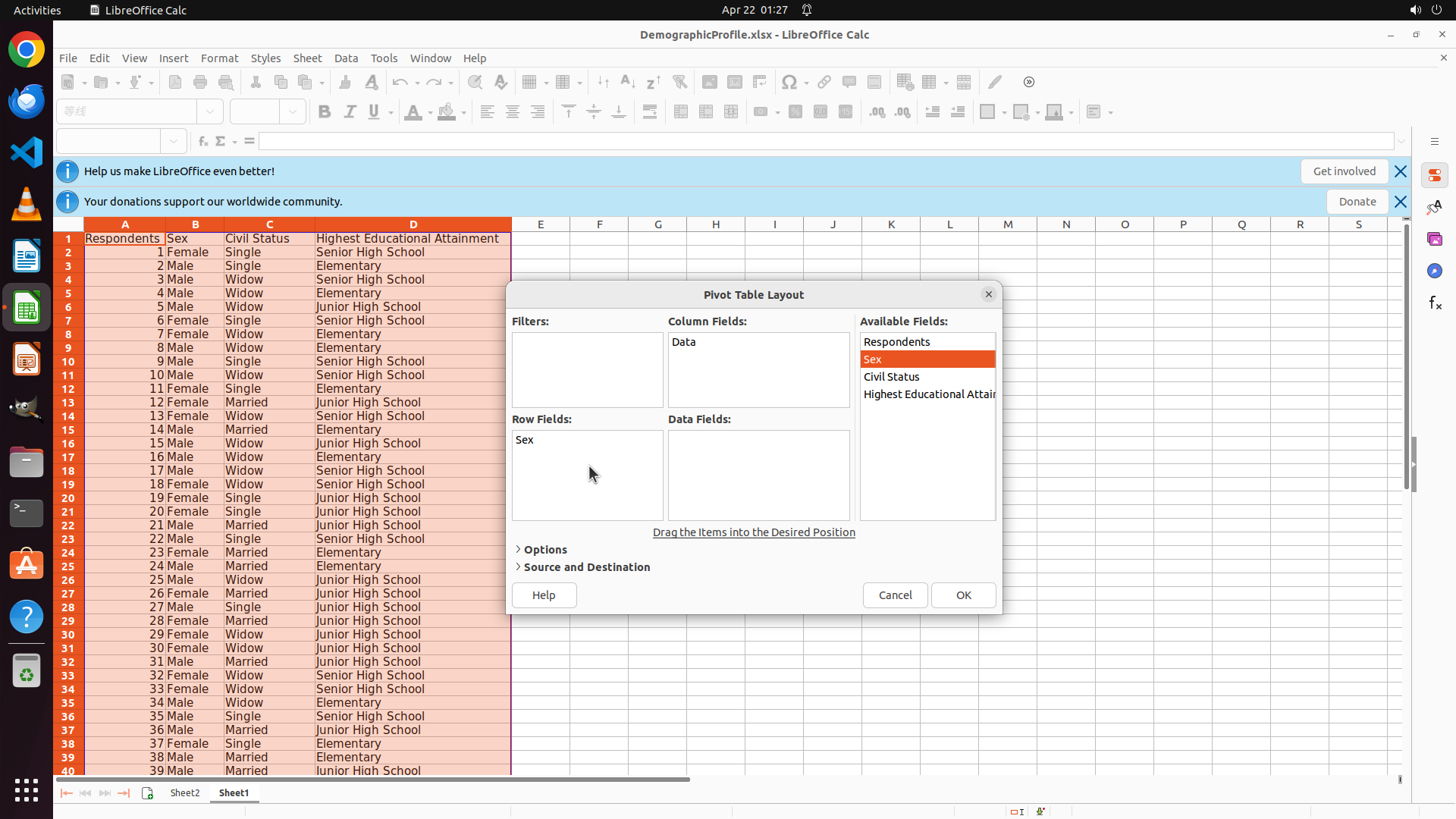 - 接下来需要创建三个数据透视表(Sex、Civil Status、Highest Educational Attainment)