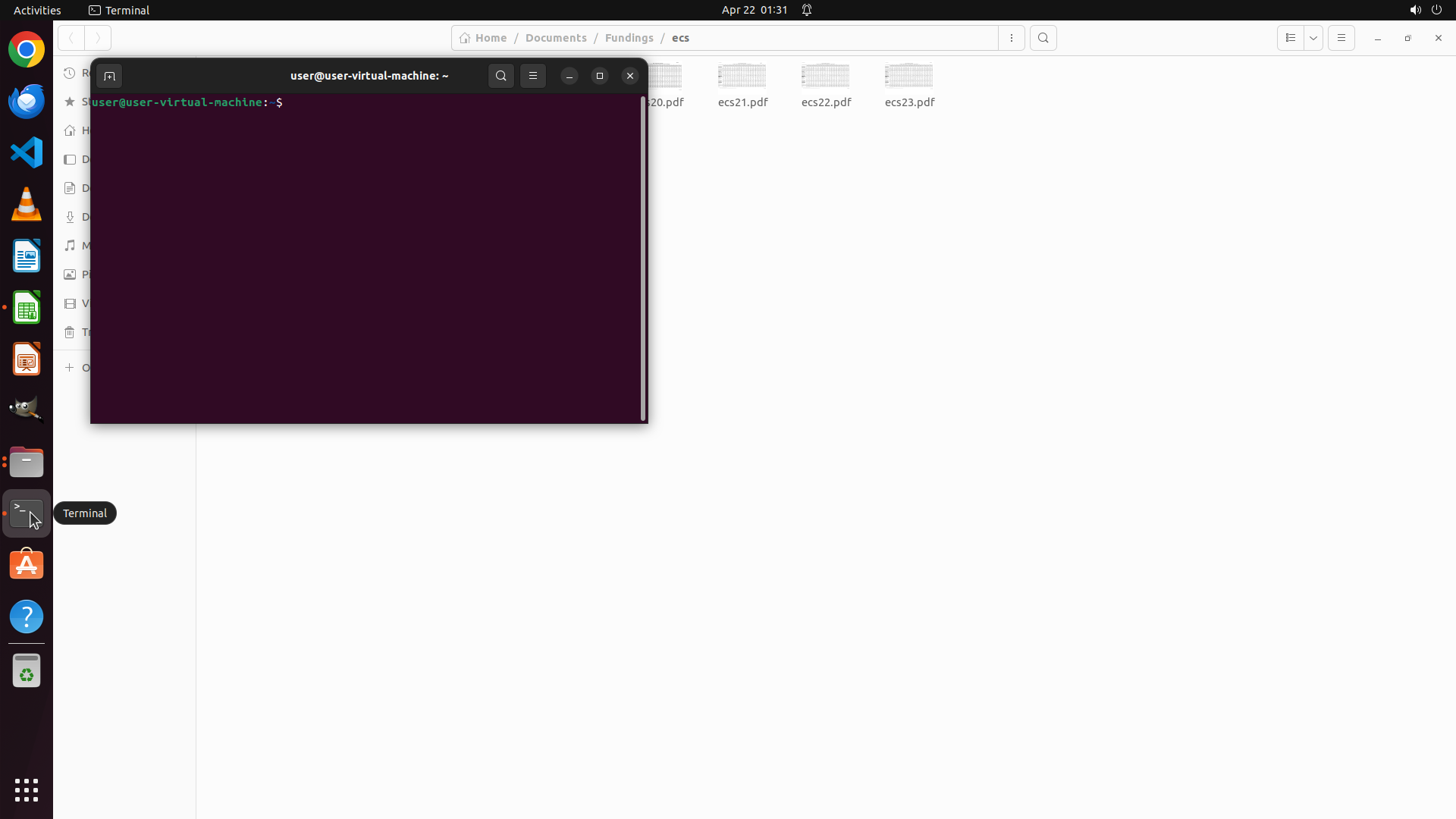 - 当前位于 `/home/user/Documents/Fundings/ecs` 目录