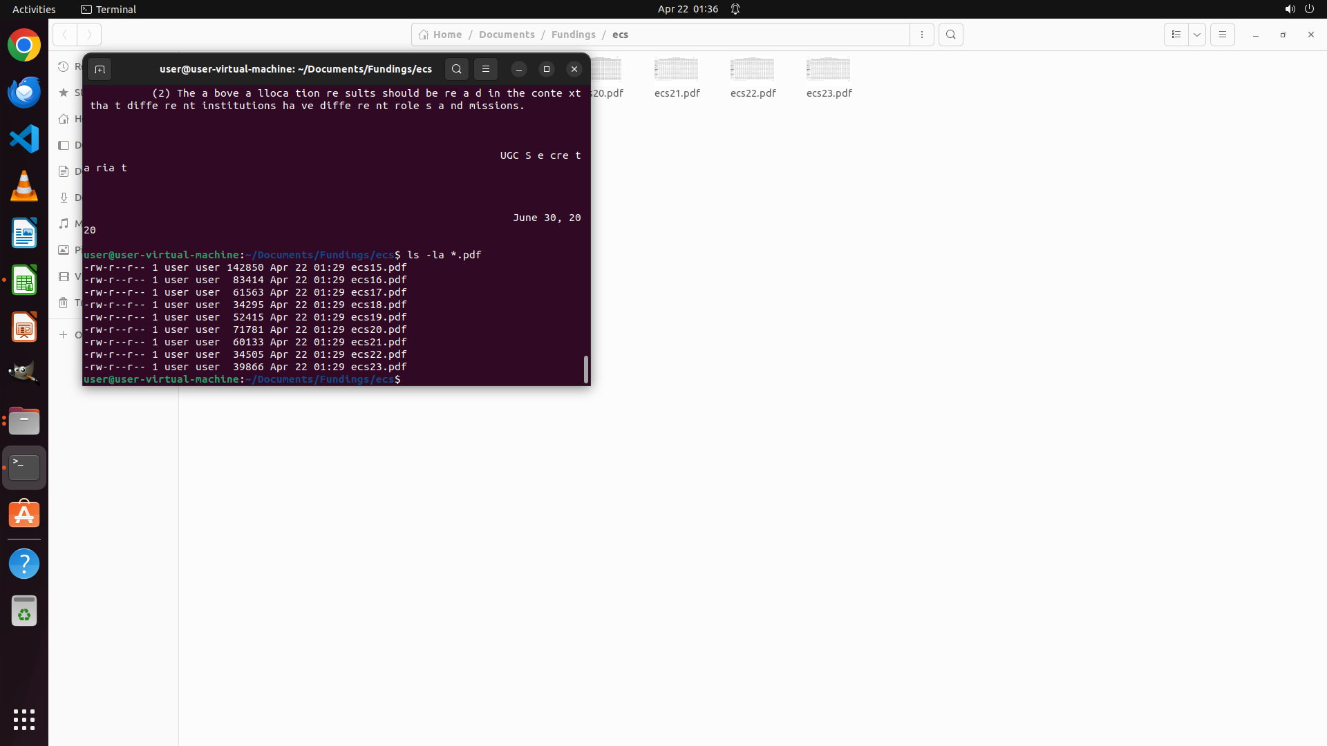 - The terminal output or file manager indicates all 9 PDF files (ecs15.pdf through ecs23.pdf) have been processed or referenced