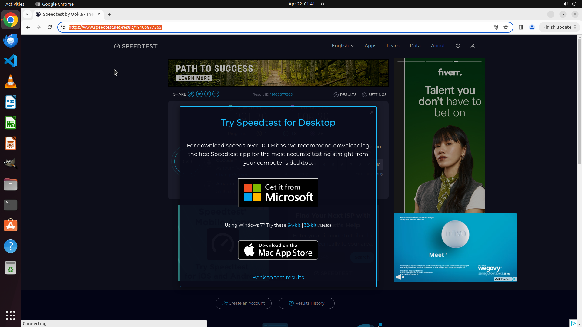 - 浏览器已经打开了 speedtest.net,这是很好的起点