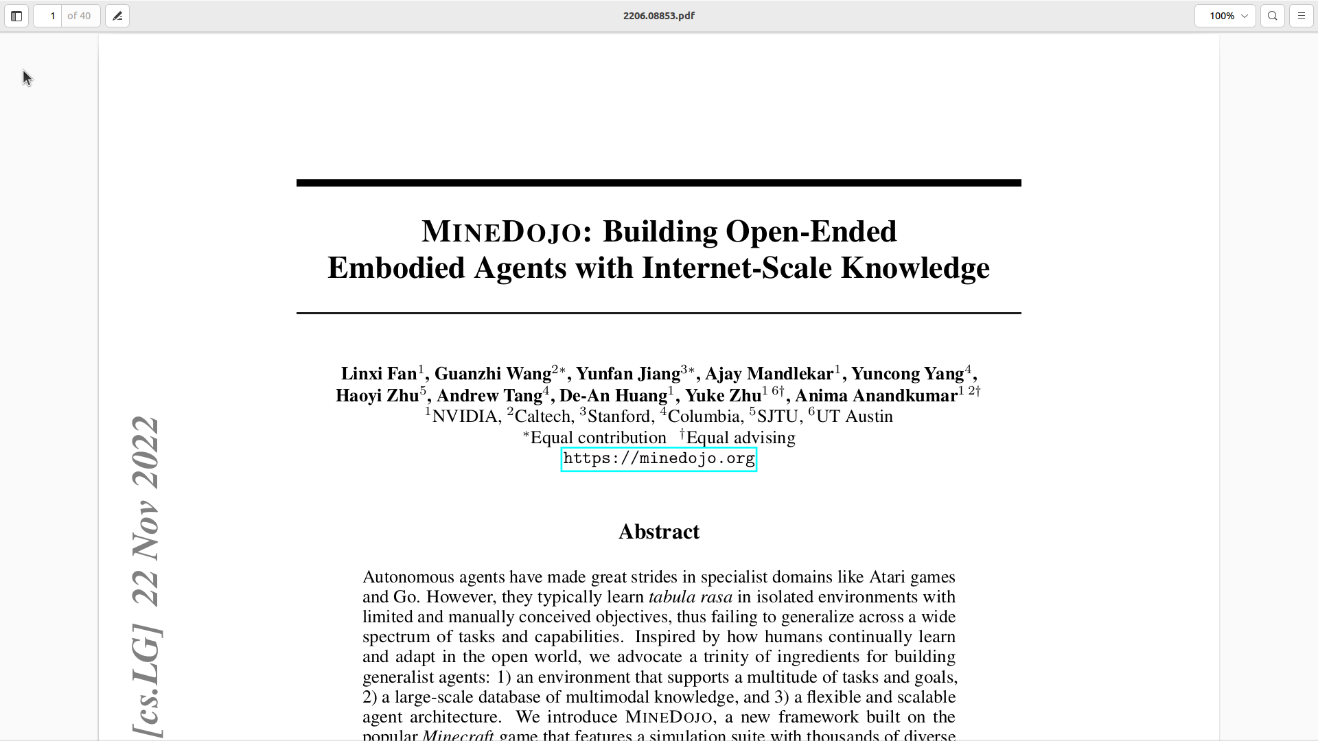 - 现在可以清晰看到论文标题"MINEDOJO: Building Open-Ended Embodied Agents with Internet-Scale Knowledge"