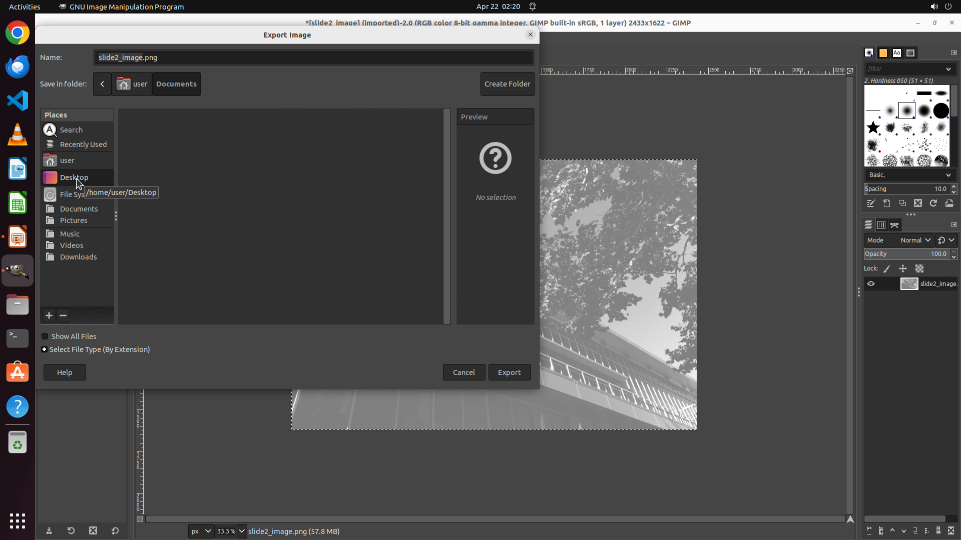 - The image "slide2_image.png" has been successfully loaded into GIMP