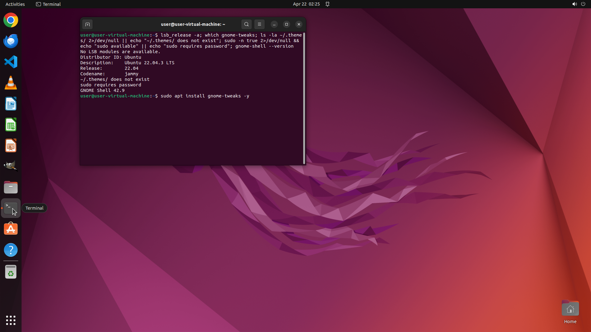 1.1: [success] Install gnome-tweaks using sudo apt install gnome-tweaks