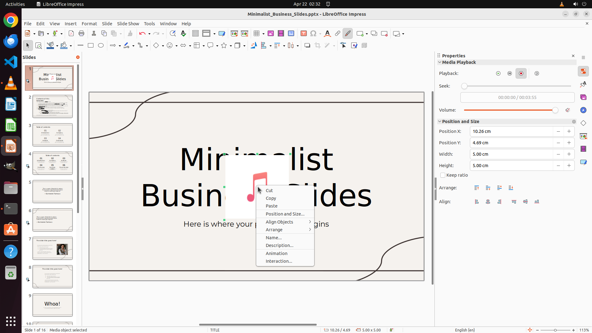 现在正在进行任务2:将 planet.wav 添加到 LibreOffice Impress 演示文稿中作为背景音乐。