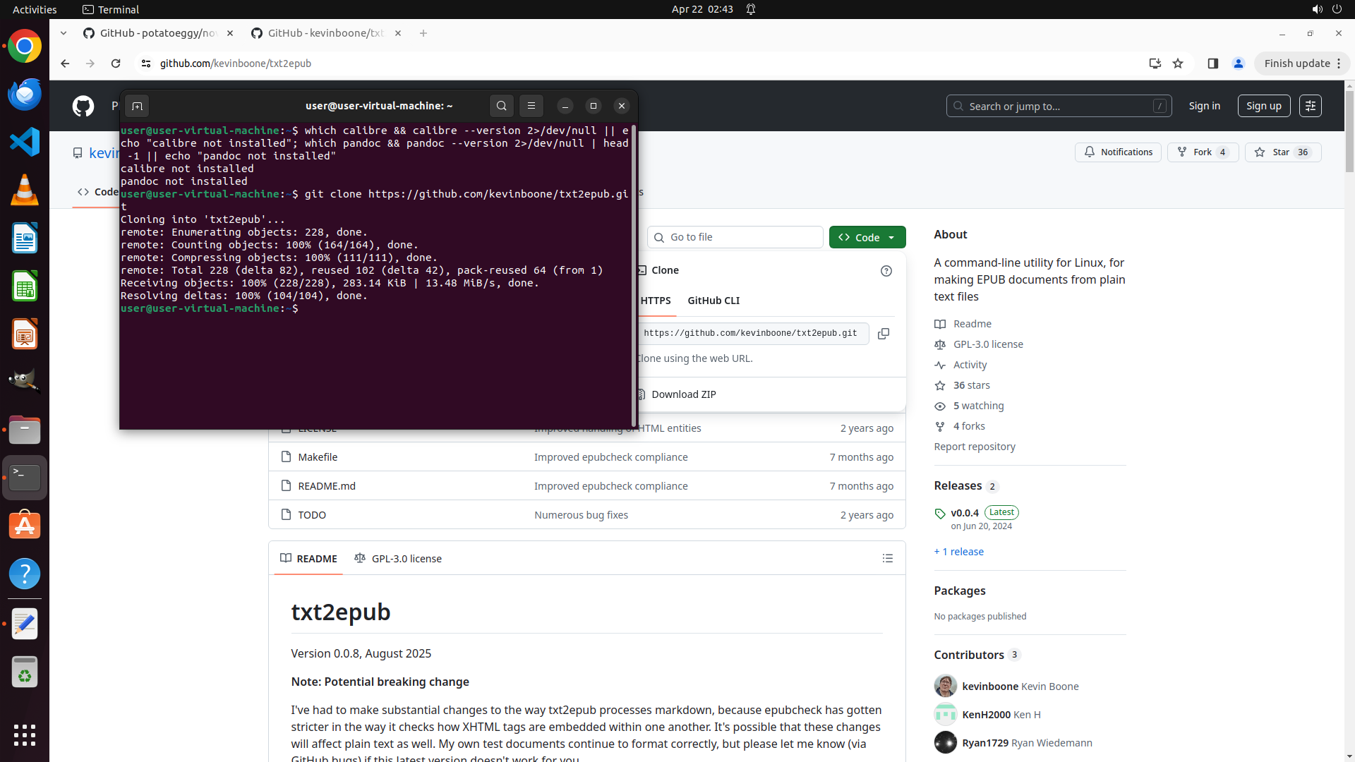 1. 在终端中执行 git clone https://github.com/kevinboone/txt2epub.git