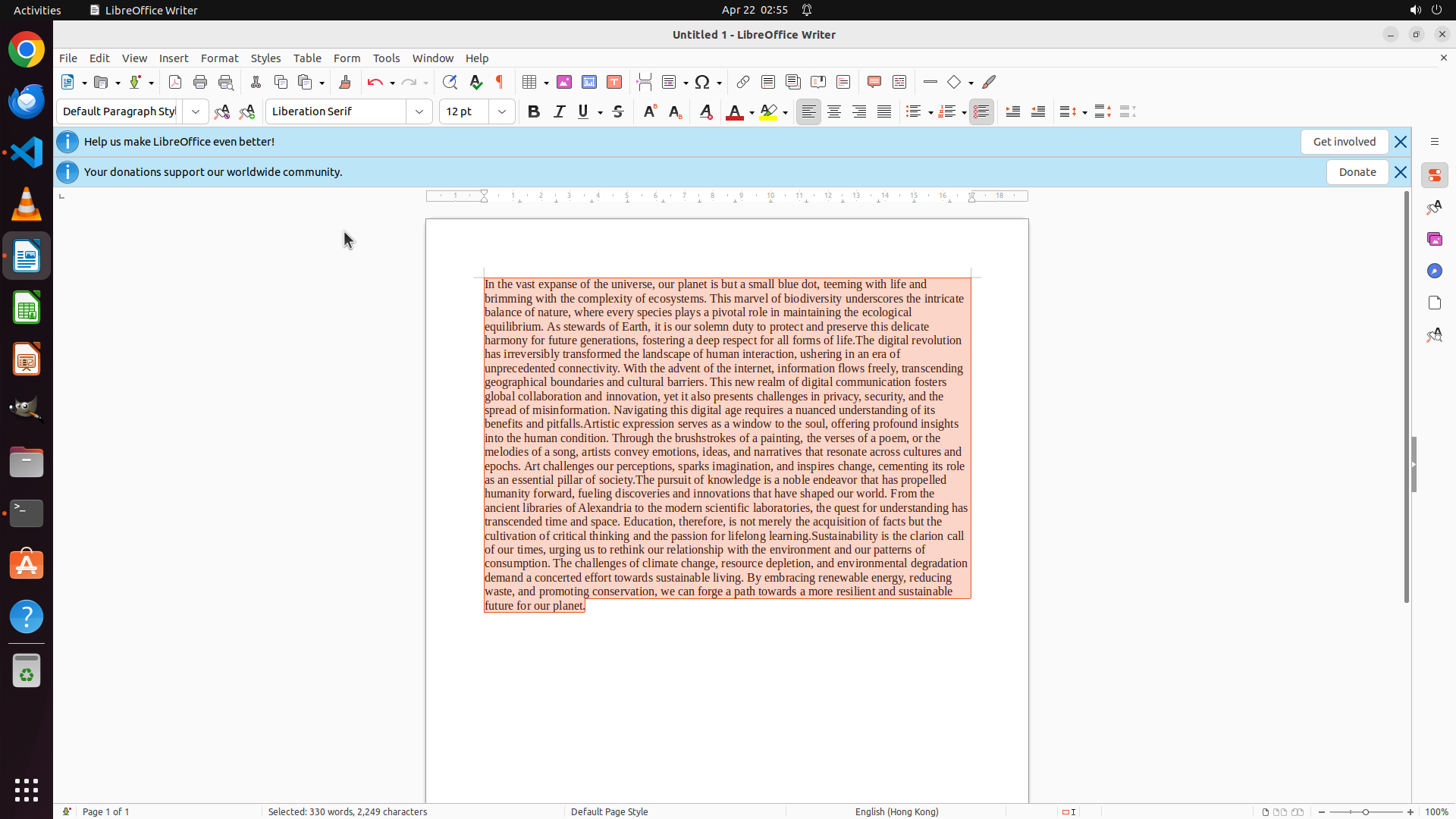 - LibreOffice Writer 已成功启动并显示文档