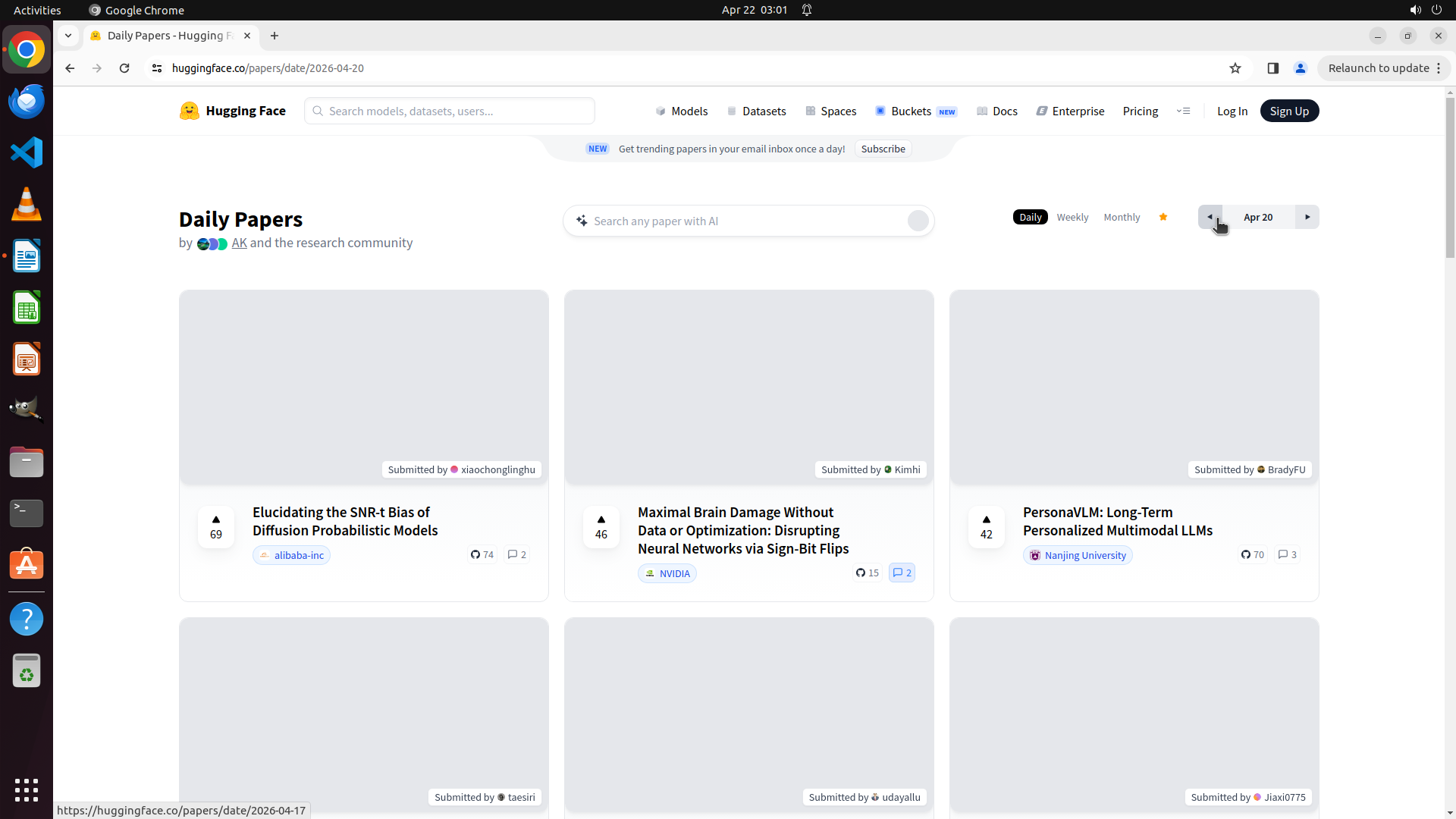 1: 打开Chrome浏览器访问Huggingface每日论文页面
